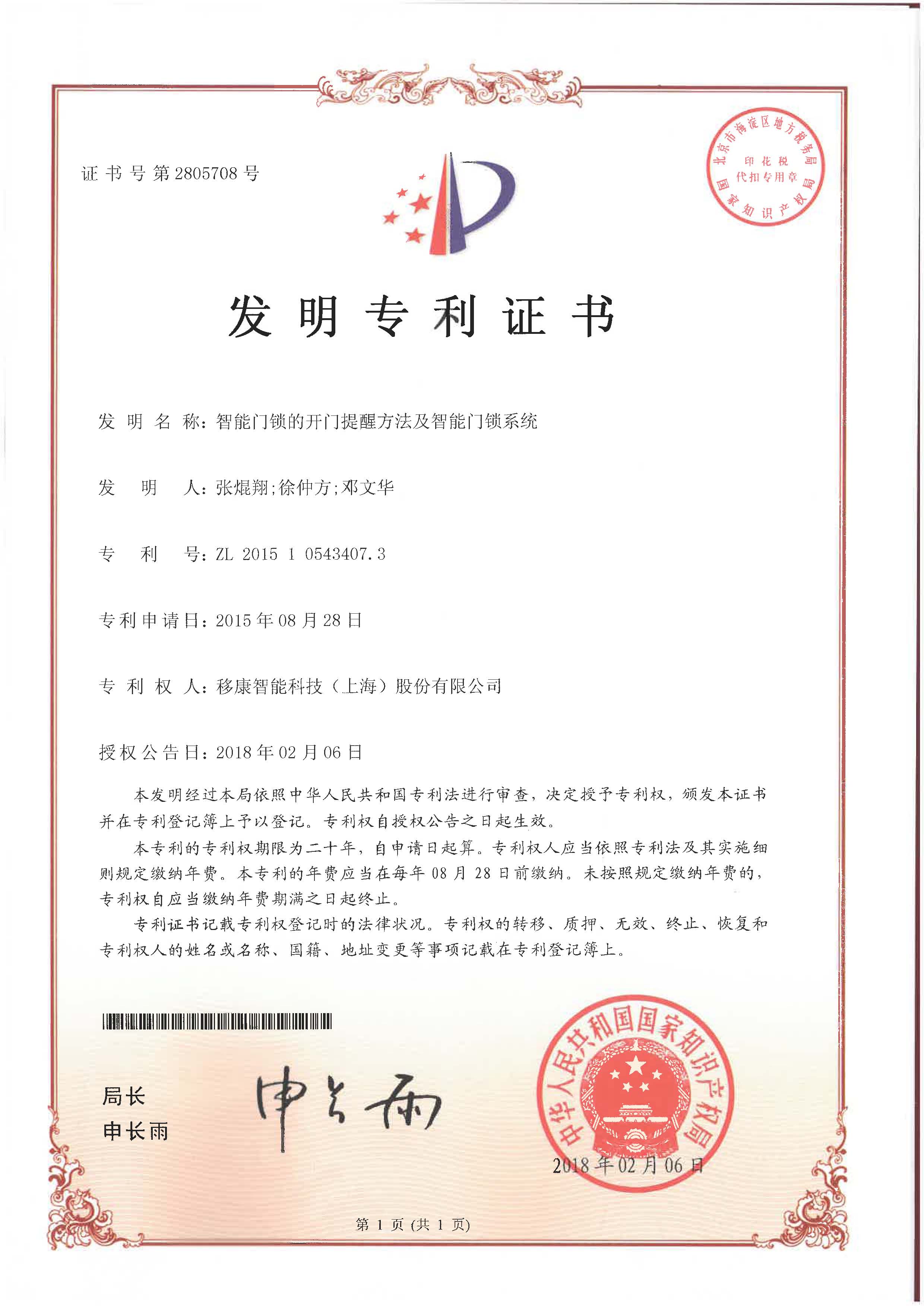 【發(fā)明專利】智能門鎖的開門提醒方法及智能門鎖系統(tǒng)