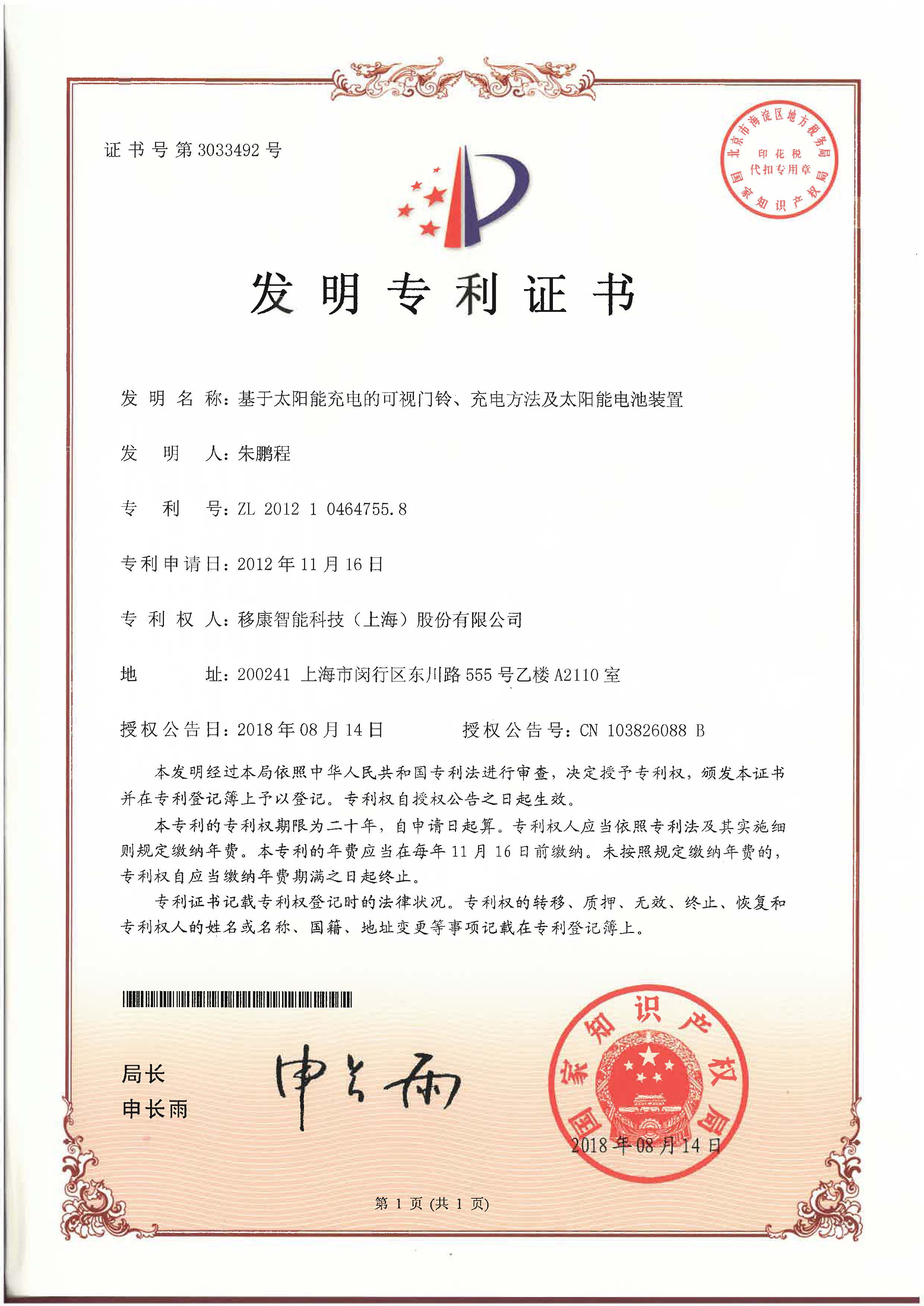 【發(fā)明專利】基于太陽(yáng)能充電的可視門鈴、充電方法及太陽(yáng)能電池裝置